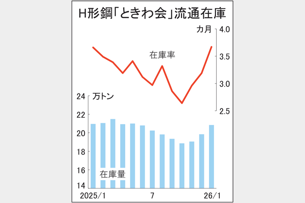 ときわ会1月末H形鋼在庫5%増 20万8400トン
