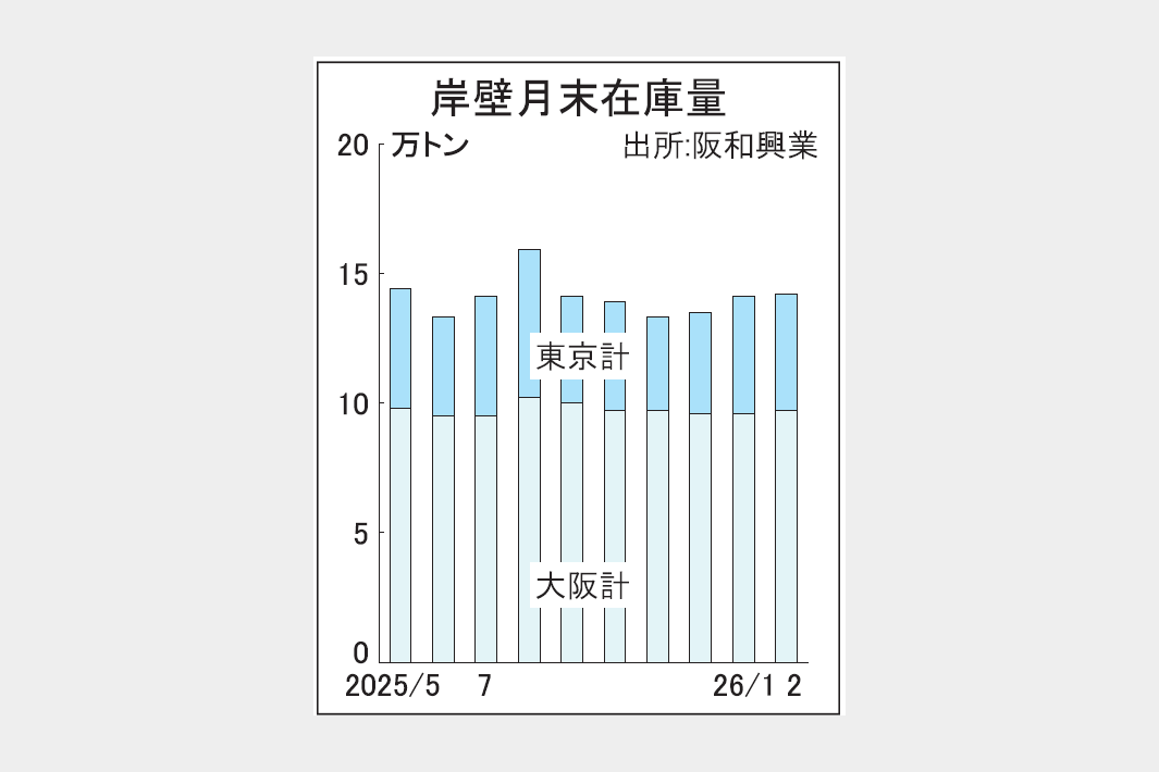 2月末、阪和興業調べ 輸入材岸壁在庫14万2000トン