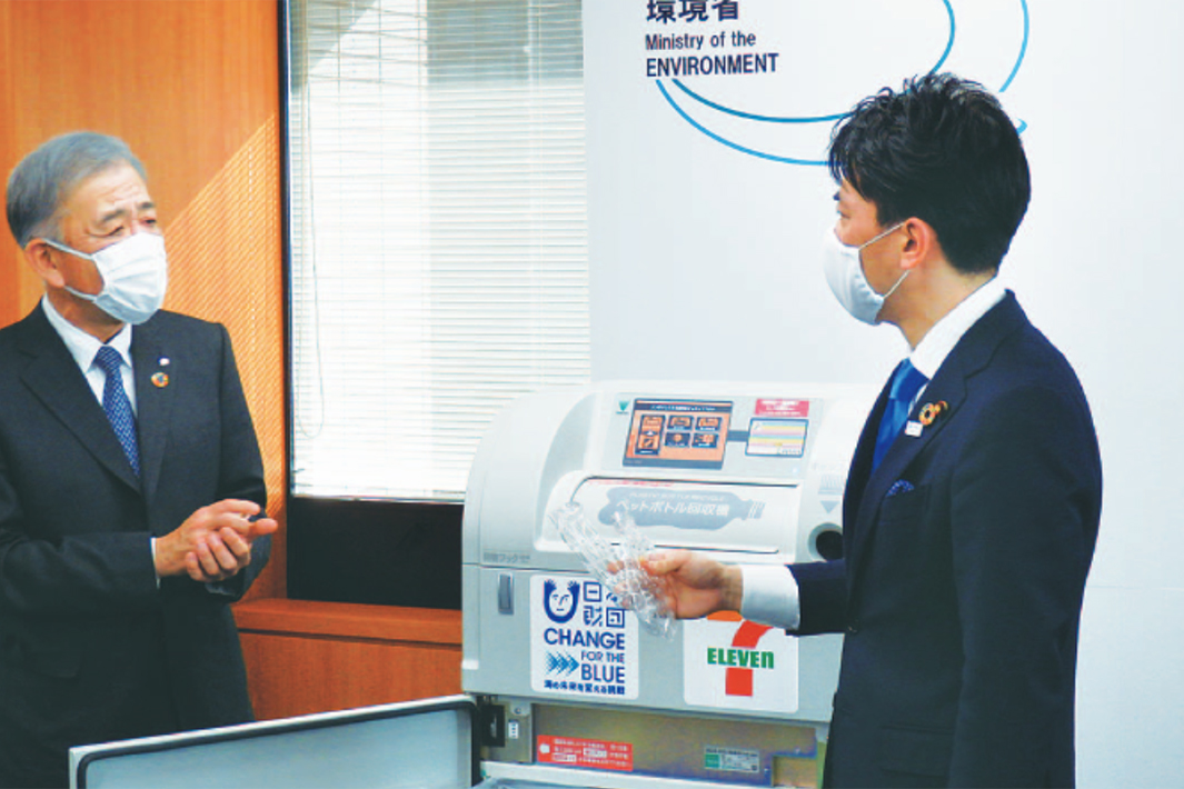 東京・霞が関の中央合同庁舎5号館。小泉進次郎環境相が機械の中に使用済みペットボトルを投入すると、容器の圧縮される音が会議室に響いた。