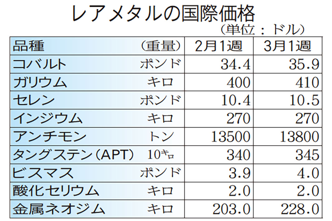 レアメタル国際相場/ロシア経済制裁で上げ気配/タングステン・ガリウム動意/磁石向け希土類続伸