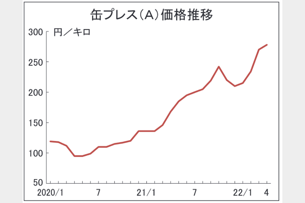 「アルミ新塊が瞬間的にオイルショック時並みの高値水準を付けた」。3月にロンドン金属取引所(LME)のアルミ相場が瞬間的にトン4000ドル付近に急伸すると、関係者の間で話題に上った。長くスクラップ業界に携わる非鉄問屋の社長は、当時と今の状況を次のように分析する。「オイルショック時のようなインフレは一度始まると加速する。消費者が物に殺到していない今は、本格的なインフレの一歩手前のような気がする」
