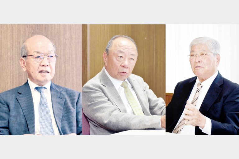 全国コイルセンター工業組合/創立40周年座談会/(上)/小河通治理事長(小河商店社長)/北雅久副理事長(秋津鋼材社長)/藤澤鐵雄副理事長(藤澤鋼板社長)/リーマン・コロナが打撃/分野依存しない体質に/逆境を乗り越えた自負