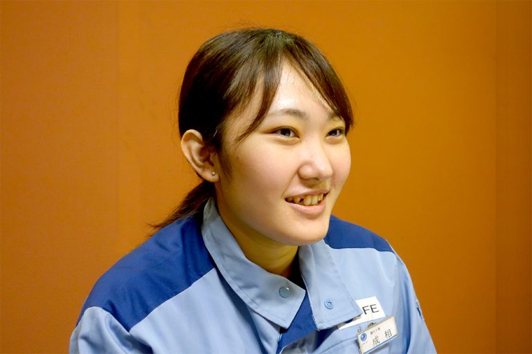 JFEスチール西日本製鉄所(倉敷地区)では、現業職の女性がさまざまな工場で働いている。鋼片工場では、2015年入社の成相瑠華(なりあい・るか)さんが唯一の女性社員として活躍。工業高校での経験から鉄鋼業界を志した。入社までの経緯や業務内容、今後の目標などについて聞いた。