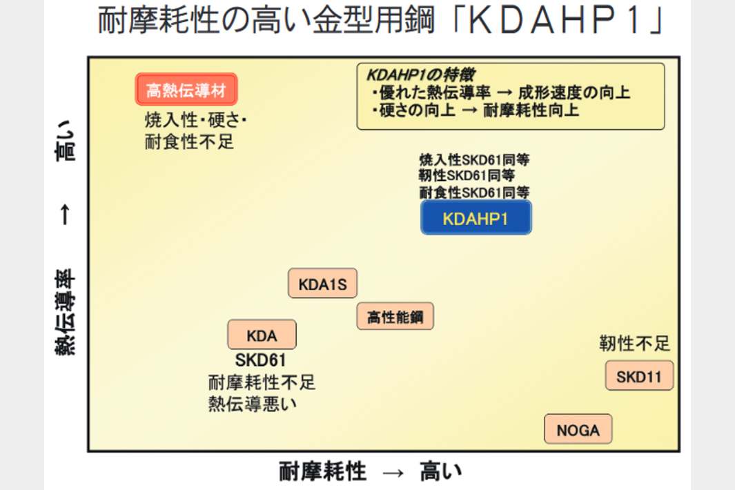 日本高周波鋼業は、「小ロット・多品種・高機能が製品開発のポリシー」(小野寺謙司取締役常務執行役員営業本部長)で、規格鋼種にとどまらず、耐熱性や耐食性、靭性や加工性などに優れた特性を有する独自製品を生み出し、需要家に提供している。メイン製品である工具鋼をはじめ、ステンレス鋼、高合金鋼、独自成分によるオリジナル鋼など幅広いラインアップを誇る。