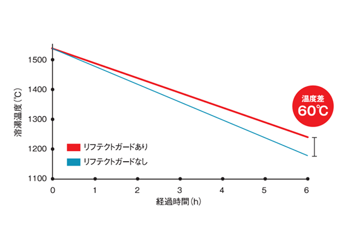 リフテクトガードは熱を反射する断熱コーティング材で、2016年から販売を開始。取鍋のふたに塗布することで、溶湯に対する保温効果を発揮する。従来は温度低下を見越して溶湯を加熱・保温するケースが多いが、同製品の実証実験では保持炉の段階で溶湯約15トンの温度低下を50―60度抑制。これにより従来の加熱エネルギーやCO2を低減する。