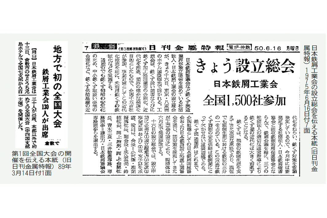 初代会長の小澤氏は会報で「国家の重要資源を供給しているという高度の自覚と責任の上に立って、一層の努力を積み重ね、諸種の困難を克服して使命達成に邁進し、国家的要請を充足しなければならない」と説いた。日本鉄リサイクル工業会は船出から半世紀が経ち、CNやサーキュラーエコノミーなどを追い風に、鉄スクラップの再資源化に一層取り組むとともに、使命感を持って次世代に引き継ぐ。
