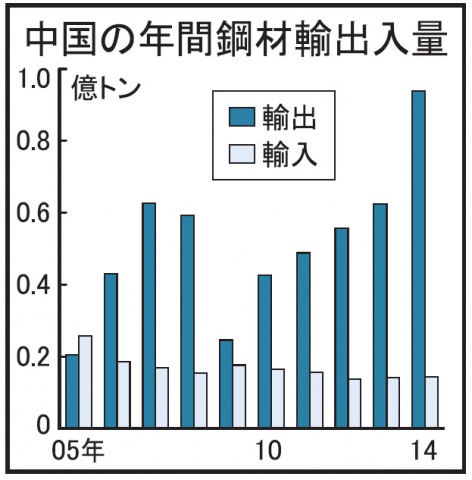 15年01月13日中国鋼材輸出、5割増 14年9378万トン