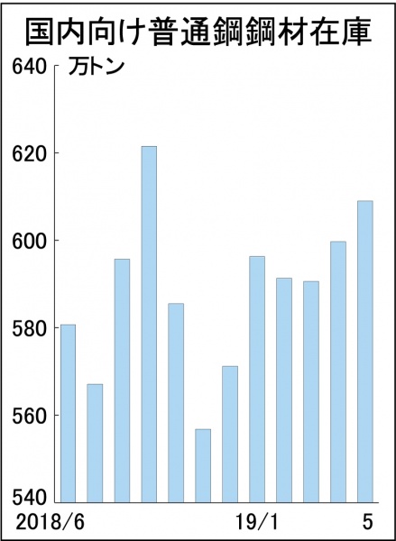 19年07月01日5月末普通鋼在庫 国内向け609万トンに増