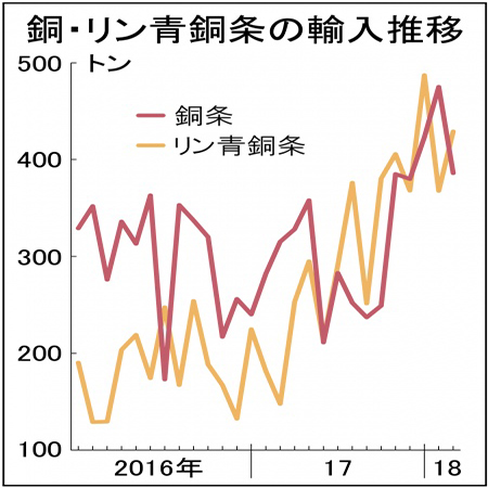 18年05月09日銅条・リン青銅条輸入急増 国内メーカーは一定の理解