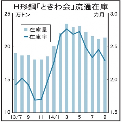 14年09月12日ときわ会H形在庫、3カ月連続減21万トン