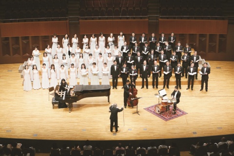ラストは、作曲家・三善晃氏の初期代表作「嫁ぐ娘に」(混声合唱曲)。娘の誕生と時間の流れを想い起こし、結婚という門出を送り出す親の気持ちを心を込めて歌い上げた。当日は64人の合唱団員が出演。ステージからは時に手拍子や動きも加わり、合唱の幅広い世界を表現して客席を魅了した。