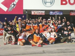 予選では第1ライダーの奥田貴哉選手が、歴代RC8Rのベストとなる2分13秒558をマーク。だが、例年にないハイレベルな予選となった結果、37位での予選通過となった。 決勝は路面温度が高く、転倒が相次いだ。だが、ライダーとメカニックの息のあったコンビネーションで、レース中盤には41番手をキープ。終盤に追い上げを見せ189周、31位でフィニッシュ、目標の30位まであと一歩に迫る大健闘を見せた。