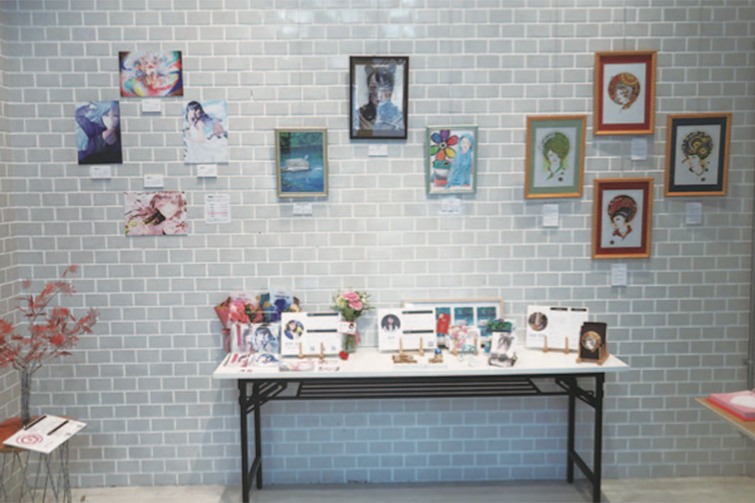 また、合同出展しているアーティストの一人、卯野美聖(うの・みさと)さんは今回が初めての個展だという。物心ついた頃から絵を描き、現在は大学で経営学を学びながら活動している。iPadを使って描くデジタルイラストに手書き風のタッチを入れるのが特徴だ。「感情の旅」をテーマにこれまで経験してきたことを作品に表現した。卯野さんは「観にきてくれた方から称賛の言葉をいただいてうれしい。これを機にまた個展を開きたい」と初展示の感想や今後の意気込みを語った。